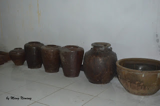 tersimpan beberapa tombak, barang-barang porselin yang terdiri piring, mangkuk,